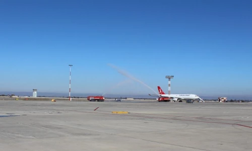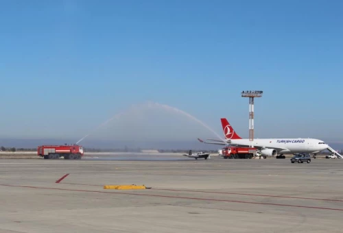 В Международном аэропорту «Манас» водяной аркой встретили летчика Союзбек Салиева
