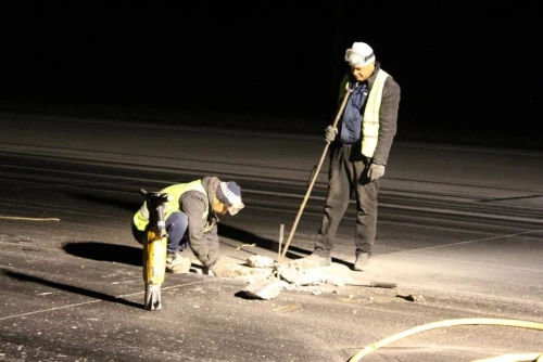 «Все ремонтно-строительные работы на аэродроме велись в ночное время суток, три раза в неделю: понедельник, среда и пятница, где были задействованы 45 человек. И все работы производились собственными силами, начиная от разборки старого покрытия заканчивая заливкой бетона», - сказал он.