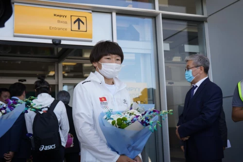 В Международном аэропорту «Манас» 7 августа 2021 года торжественно встретили спортсменов Олимпийской сборной Кыргызстана и поздравили их с достижениями.